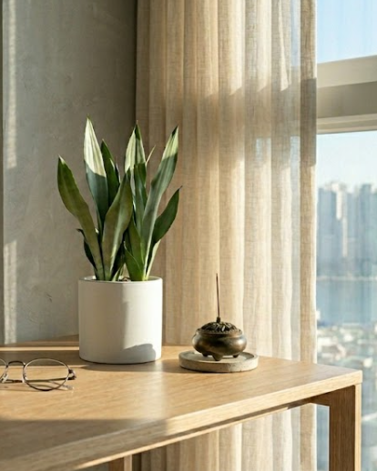 - 침대 옆 협탁: 밤에도 산소를 내뿜고 이산화탄소를 흡수하는 '캠(CAM) 식물'이기 때문에 침실에 두기에 아주 좋습니다. 숙면을 돕는 든든한 조력자가 되어줄 거예요.