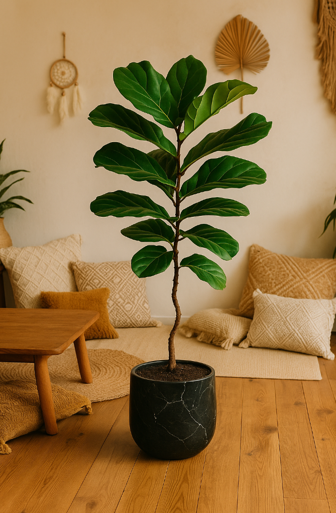 - 거실 통창 옆: 대형 떡갈고무나무나 벵갈고무나무를 배치해 자연스러운 파티션 역할을 하게 하세요.