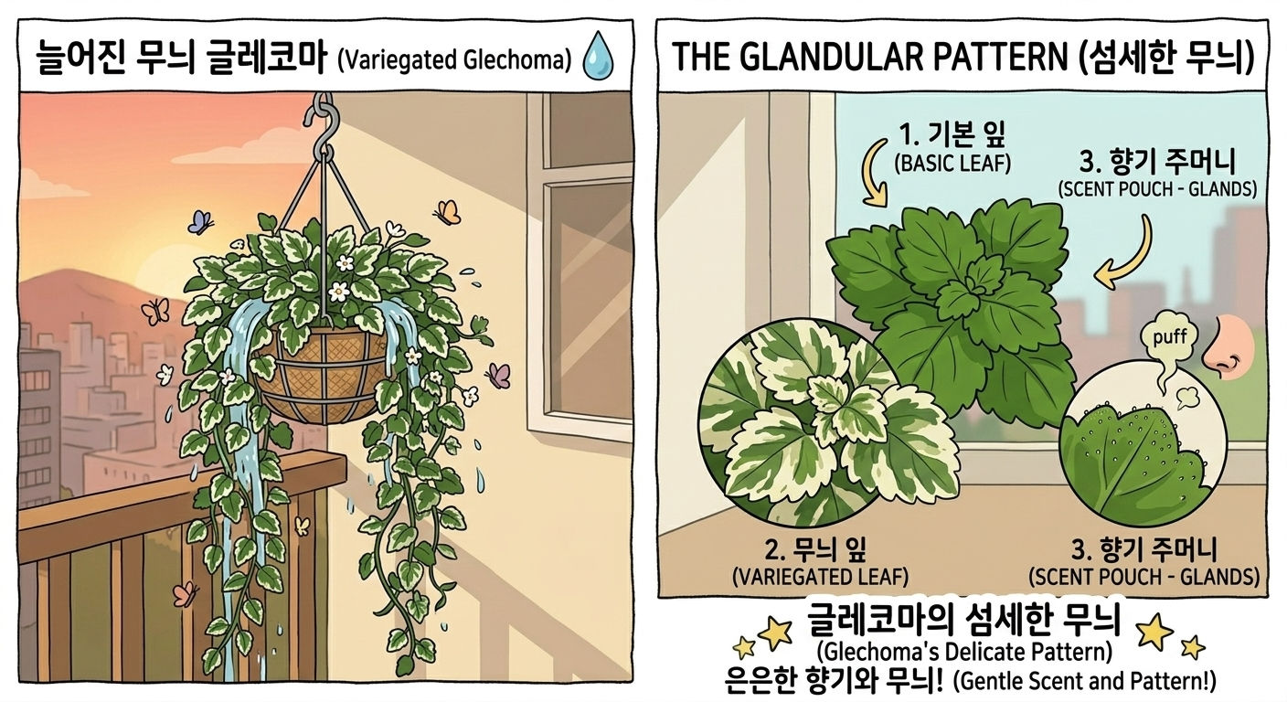 화분 아래로 치렁치렁 늘어지는 덩굴 식물을 좋아하시나요? 그렇다면 글레코마는 최고의 선택입니다. 잎 가장자리에 하얀 테두리가 둘러진 '무늬 글레코마'는 마치 초록색 잎 위에 하얀 눈이 내려앉은 듯한 신비로운 분위기를 자아내죠. 오늘은 정원의 활력소, 글레코마의 특징과 매력에 대해 알아봅니다.